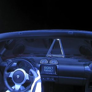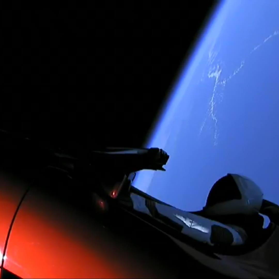Right now, there’s a Telsa (the car) flying in space, strapped on to that rocket, with a dummy in an astronaut suit in the driver’s seat, within eye view of what most folks will only ever get to see of space in their lifetime through a television monitor.