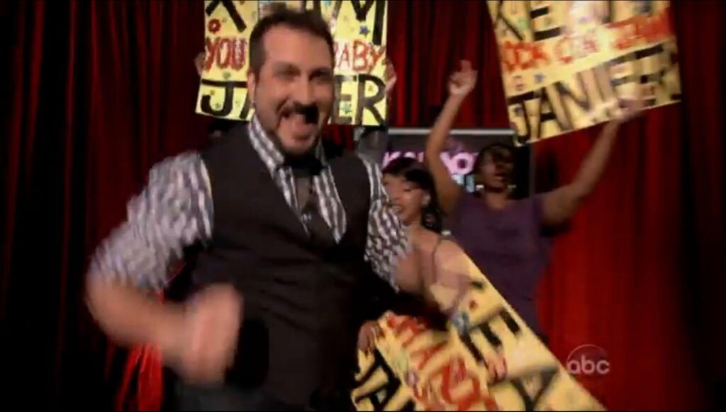 - In 2011, I was a contestant on the ABC show “Karaoke Battle USA” that Joey Fatone hosted, the pic below was a screenshot from the show where my friends were waving signs, supporting me.